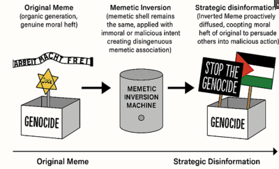 There is something uniquely cruel and unmistakably intentional about accusing the descendants of Holocaust survivors of committing genocide. This is not a neutral misclassification. It is not an innocent exaggeration. It is a calculated memetic inversion, designed to sting. [Emphasis added]