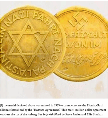 For starters, Zionists and Nazis were close allies in the years preceding World War II, during the war itself, and in certain respects, even after the war. This alliance is well-documented [1].