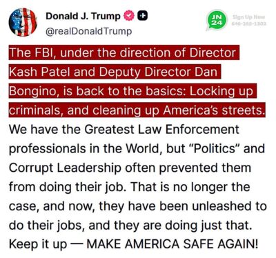 [Ed.: We all had such high hopes for Kash Patel and Dan Bongino, didn’t we! They once had the trust of the whole nation! Now, Kash will live the rest of his life with no one believing a word he says. Remember this:
